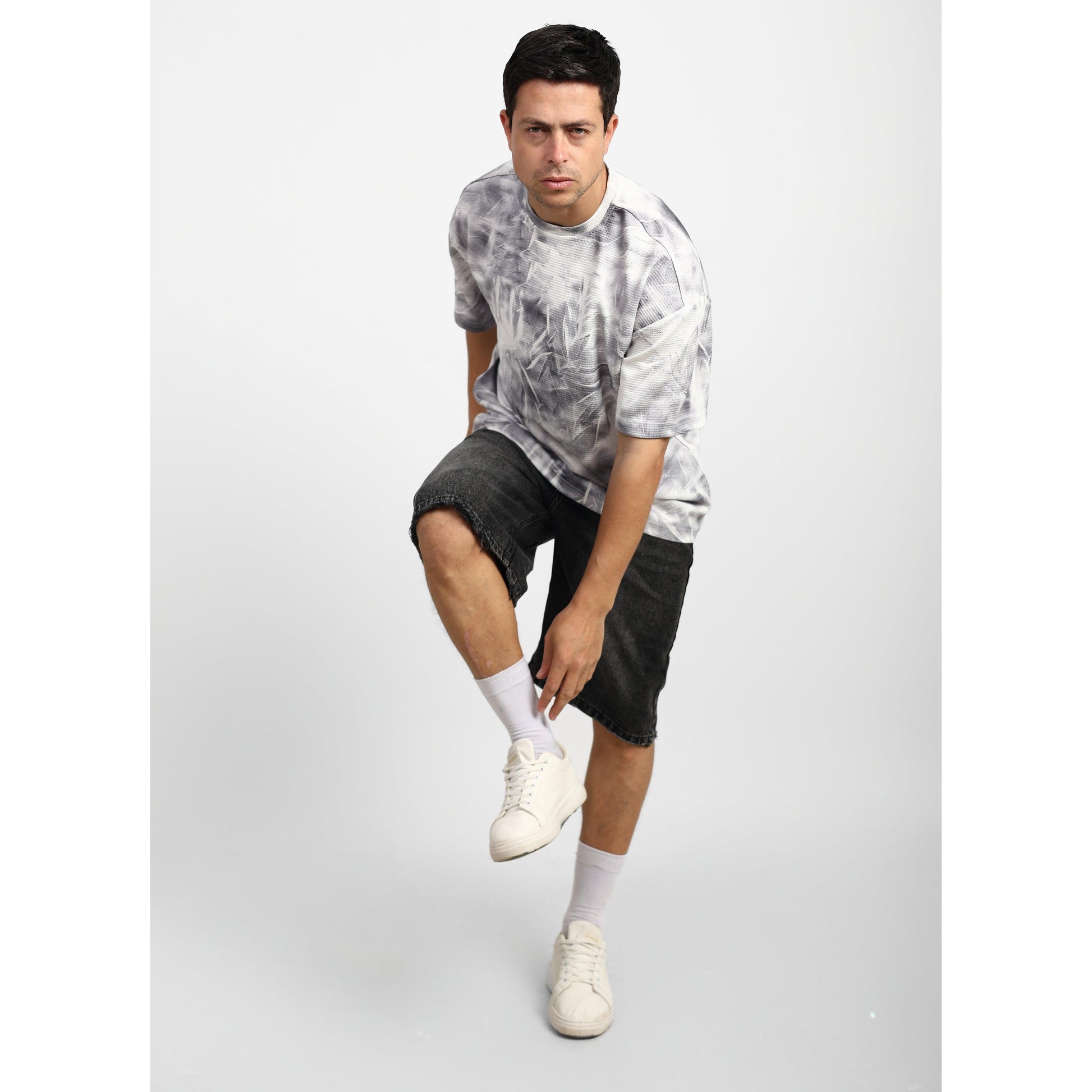 Modern oversized printed t-shirt designed for a bold streetwear look and everyday comfort. Made from soft breathable cotton fabric that provides a relaxed feel and a loose fit. The abstract graphic print adds a unique edgy style, making it perfect for casual outfits and easy to pair with shorts, jeans, or sweatpants.